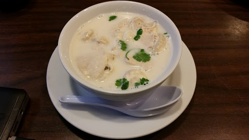 I ordered the walnut shrimp and melon lunch special, which got a me a hot & sour soup and rice. He wanted the curried tofu and veggies off the main menu. I got to taste it – yum! He tasted mine. I adore that sharing.