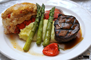 “What about starting with the Oysters Rockefeller, Caesar salads, then the filet mignon and lobster tail?” he asked.