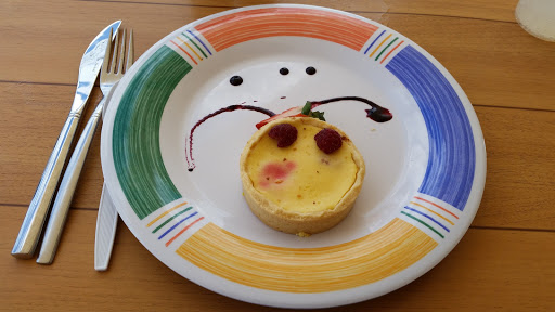 Passion fruit raspberry tart – dessert at the hotel beach bar