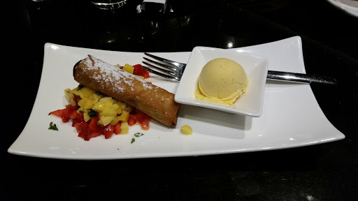 Chocolate fondant dessert with fresh fruit and coconut sorbet