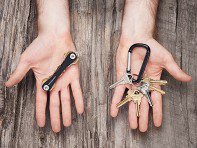 It’s called Keysmart – a minimalist key organizer that puts them into a Swiss Army Knife-like metal holder. So they don’t jangle or poke holes in my pocket or purse, and fit into tighter spots. It has a little square hook on the end so I can add it to a lanyard or to a clip in my purse, or add my car key fob. I got a blue one. I adore it!